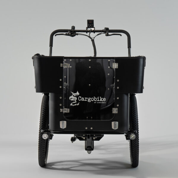 Fronten av lådan på DeLight Kindergarden är öppningsbar vilket innebär att barnen själva kan hoppa in i lådan och luckan är tillverkad i genomskinligt plexiglas. De två parallella sittbänkarna är utrustade med sex individuella säkerhetsbälten för barnens säkerhet. Lådan är byggd ut över hjulen vilket gör denna lådcykel till vårt mest rymliga lastalternativ. Hydrauliska skivbromsar såväl fram som bak samt automatisk belysning bidrar till både säkerhet och användarupplevelse. Kapell finns att köpa som tillbehör.