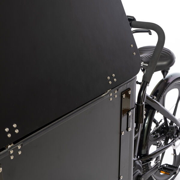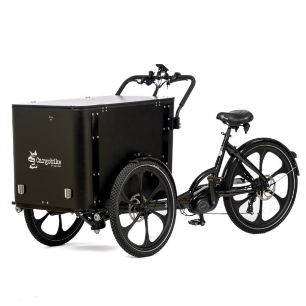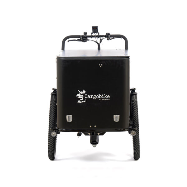 Lådan är till skillnad från våra övriga modeller inte utrustad med sittbänkar, vilket ger mer utrymme för packning. Våra boxmodeller har högre sidor än våra övriga modeller vilket erbjuder varierande lastmöjligheter. Lådans generösa yta är perfekt för att pryda med din logotyp eller ditt budskap. Växelsystemet består av ett utanpåliggande 8-växelsystem från Shimano, display är utrustad med ett uttag för USB-laddning och cykeln har ljusautomatisk belysning fram och bak. Batteriet är på 16Ah från Samsung/LG. De helgjutna magnesiumhjulen eliminerar behovet av ekerunderhåll och cykeln har hydrauliska skivbromsar fram och bak.
