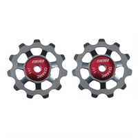 Rulltrissor i aluminium 7075 som styr kedjan mer precist. De tätade kullagren ger en lång hållbarhet och lågt rullmotstånd. Keramiska lager som har minimal friktion. 11T trissa. 11T. Kompatibel med Shimano 9 och 10-speed (except RD-7900 and 7970) och Campagnolo 11-speed.
