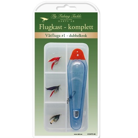 Flugkast - komplett levereas med kastflöte, tafs och flugor i en smidig ask. Att fiska med Flugkast är en mycket effektivt och spännande metod och ett klassiskt sätt att fånga Harr, Öring och Röding. Darts flugkast är knutna med snappers som gör det enkelt att montera sina favoritflugor och finns i ett flertal fångstgivande flugmönster-set.