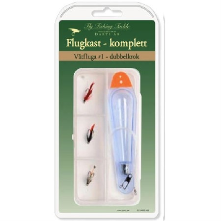 Flugkast - komplett levereas med kastflöte, tafs och flugor i en smidig ask. Att fiska med Flugkast är en mycket effektivt och spännande metod och ett klassiskt sätt att fånga Harr, Öring och Röding. Darts flugkast är knutna med snappers som gör det enkelt att montera sina favoritflugor och finns i ett flertal fångstgivande flugmönster-set.