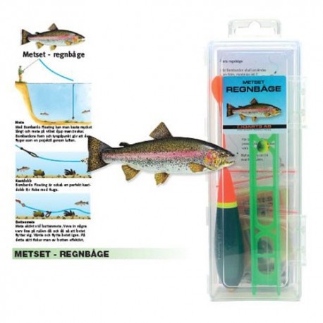 Metset för regnbåge. Innehåller material för både flöt- och bottenmete