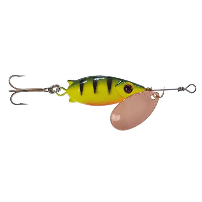 Denna extremt långkastande spinnare använder du både i stilla och strömmande vatten. Tack vare kroppens form så motverkar den att linan tvinnar sig. De 3-d realistiska ögonen förhöjer betets attraktionskraft på rovfisken. Den kan helt enkelt inte motstå denna läckerbit. De vassa krokarna från BKK ger en säker krokning.