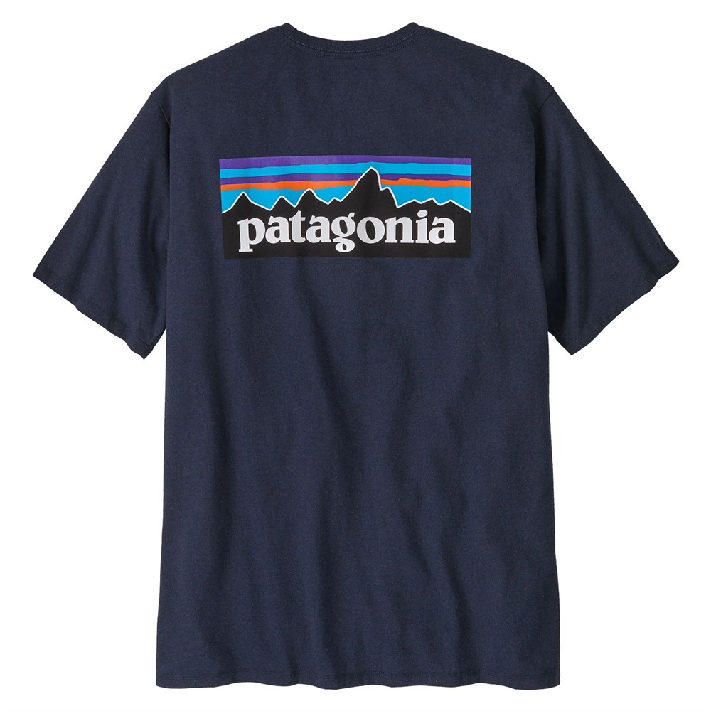 Patagonia M's P-6 Logo Responsibili-Tee är en klassisk T-shirt med grafik, tillverkad av återvunna material. Den är gjord av 50 % återvunnen bomull och 50 % återvunnen polyester, vilket minskar behovet av nya råmaterial.