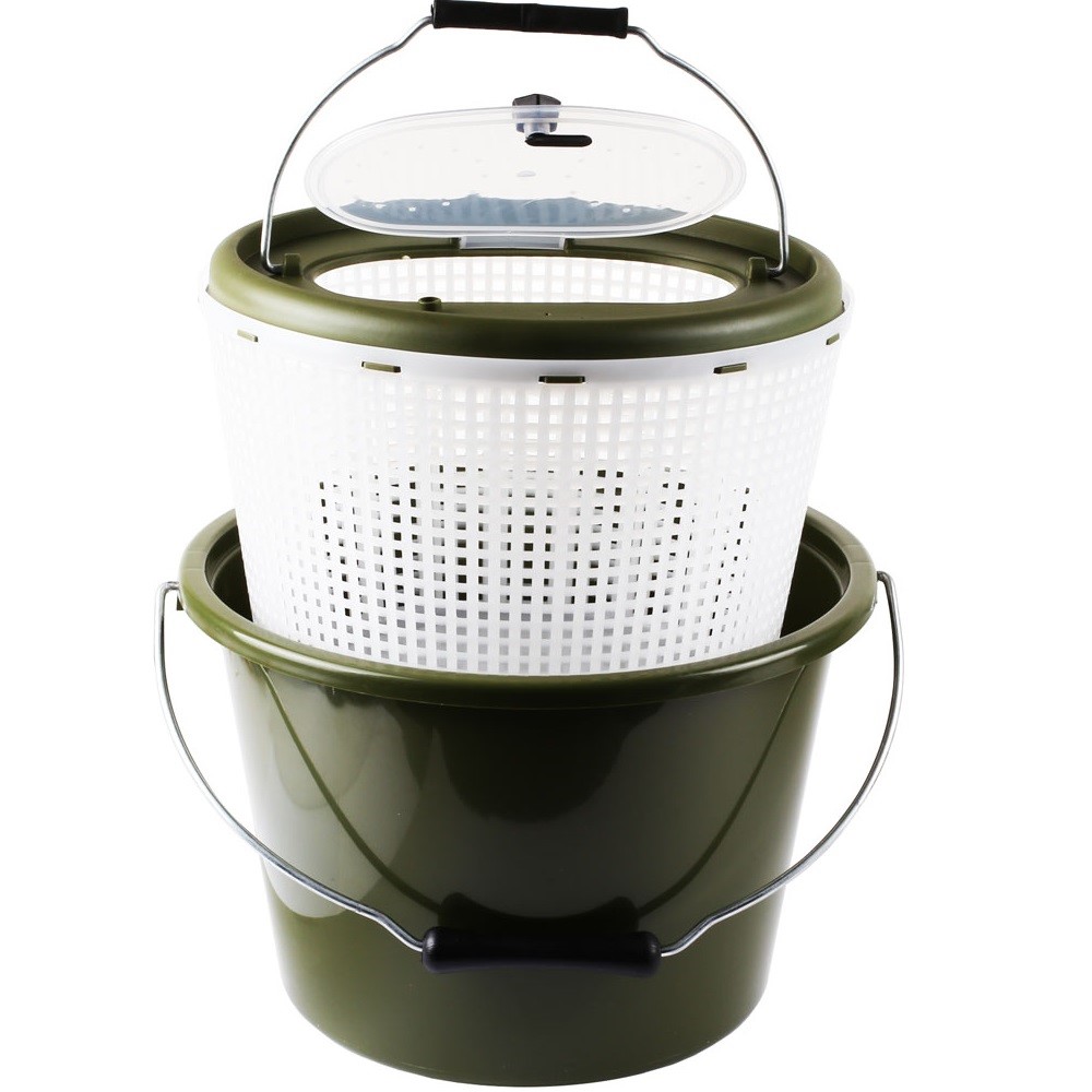 Robust plasthink för optimal förvaring av betesfisk. Löstagbart innertråg av kraftigt plastnät och med lock. Denna konstruktion möjliggör enkla vattenbyten och gör det lätt att få tag i betesfisken. Innertråget kan också förvaras direkt i sjön så att fisken har tillgång till friskt och syrerikt vatten.