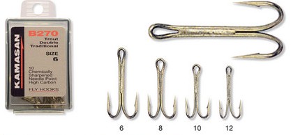 B270 är en dubbel öringkrok för våtflugor som även passar för lättare laxfiske, kommer i förpackningar om 10 krokar. Kamasan är japansktillverkade krokar, gjorda av förstklassigt kolstål och kemiskt slipade.