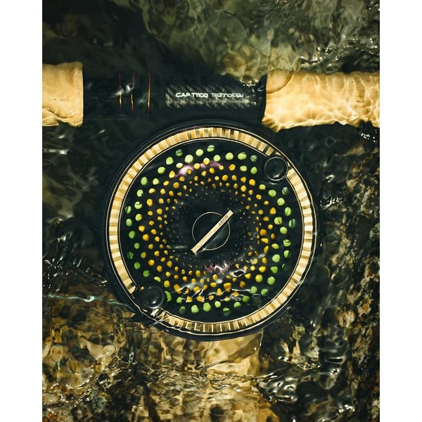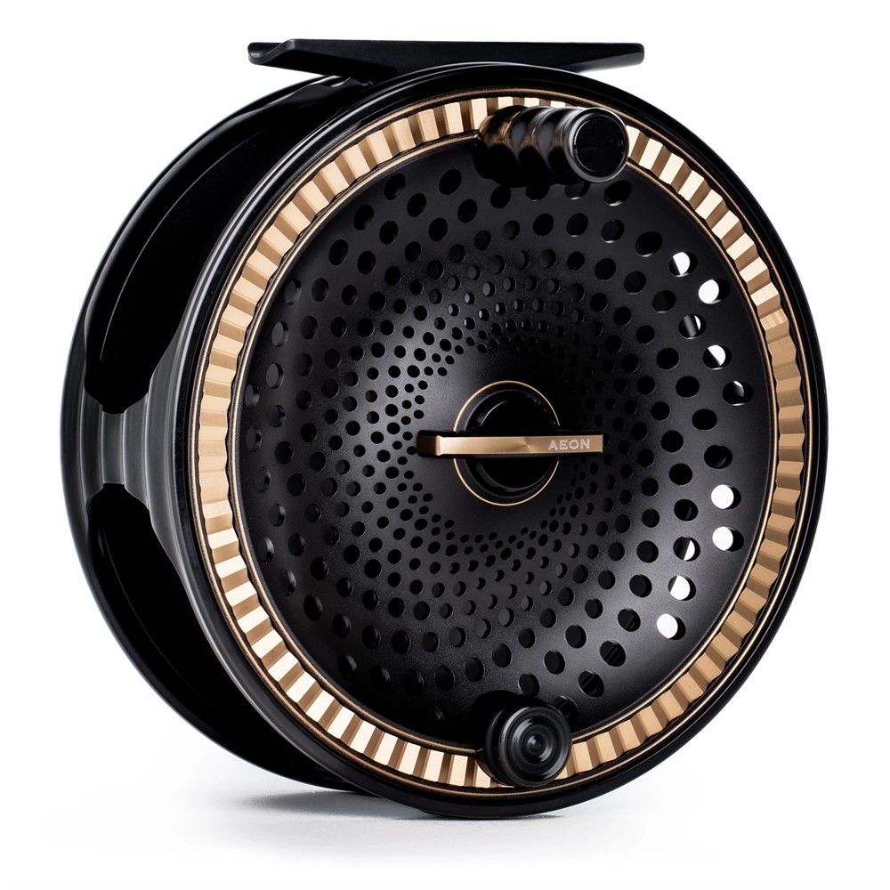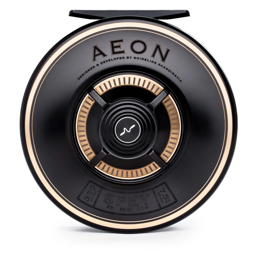 Aeon-rullen är en fusion av tidlös skandinavisk design och avancerad teknik. Den främre sidan har en Fibonacci-mönstrad öppning och organiska former som ger ett elegant utseende. Baksidan kombinerar matta och blanka ytor med en dubbelfärgad anodisering på bromsindikatorn. Det kraftfulla kolfiberbromssystemet med 7,5 kg bromskraft är förseglat och hanterar även de största fiskarna. Anti-snag-funktionerna på spolkärnan och bromsknappen minskar lintrassel, och ljudet är noga justerat för att ge en klassisk Guideline-ton.