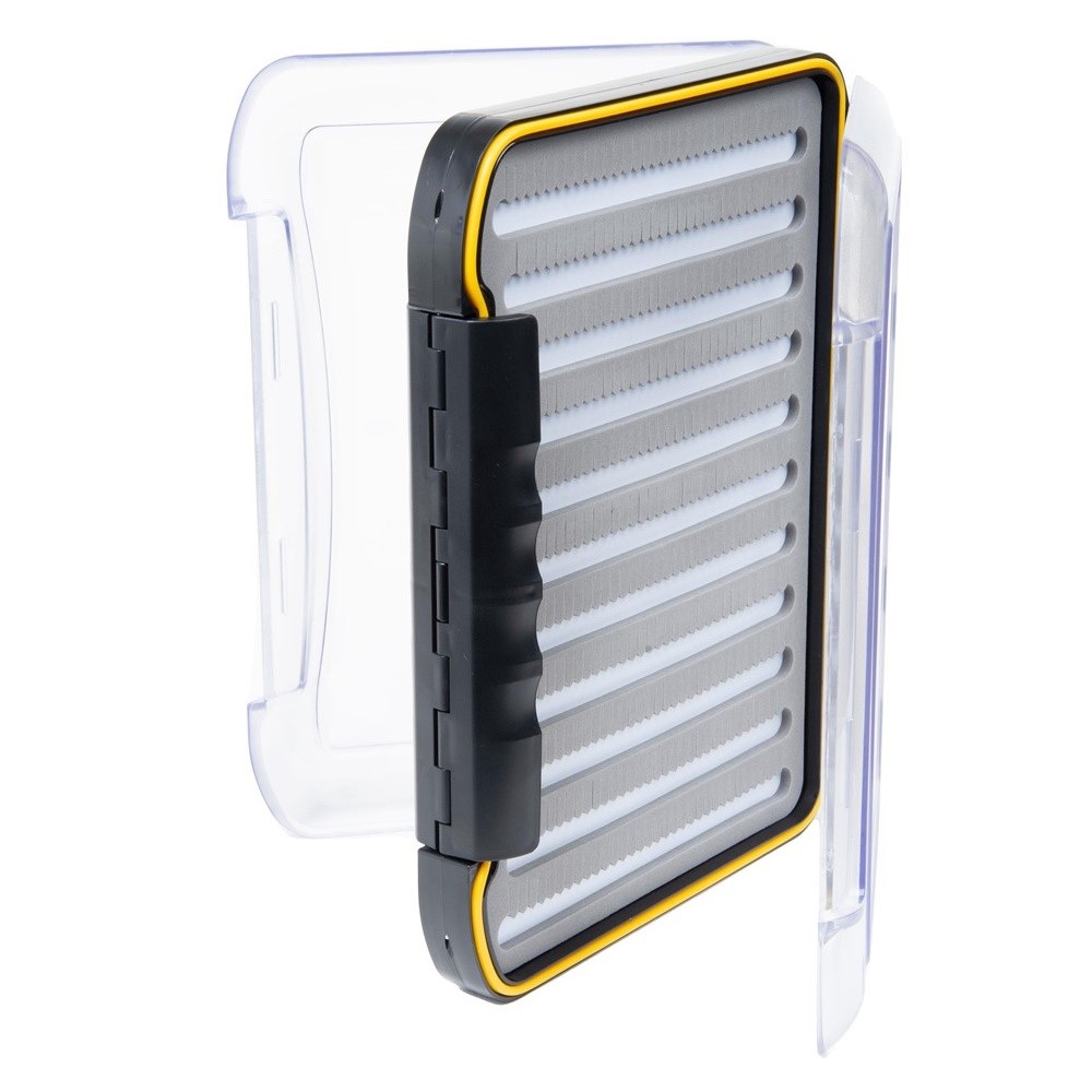 Denna stora, dubbelsidiga och vattentäta flugask är perfekt när du ska bära en båtlast med flugor, eller om du vill ha en stor central förvaringsplats för dina flugor i hemmet. Konstruktionen är mycket solid och lådan är vattentät. Vikten är 893gram och den tål mycket stryk, som att ligga i båten eller skramla runt i väskorna. Lådan är dubbelsidig och varje sida öppnas separat med sin egen skåpmekanism.