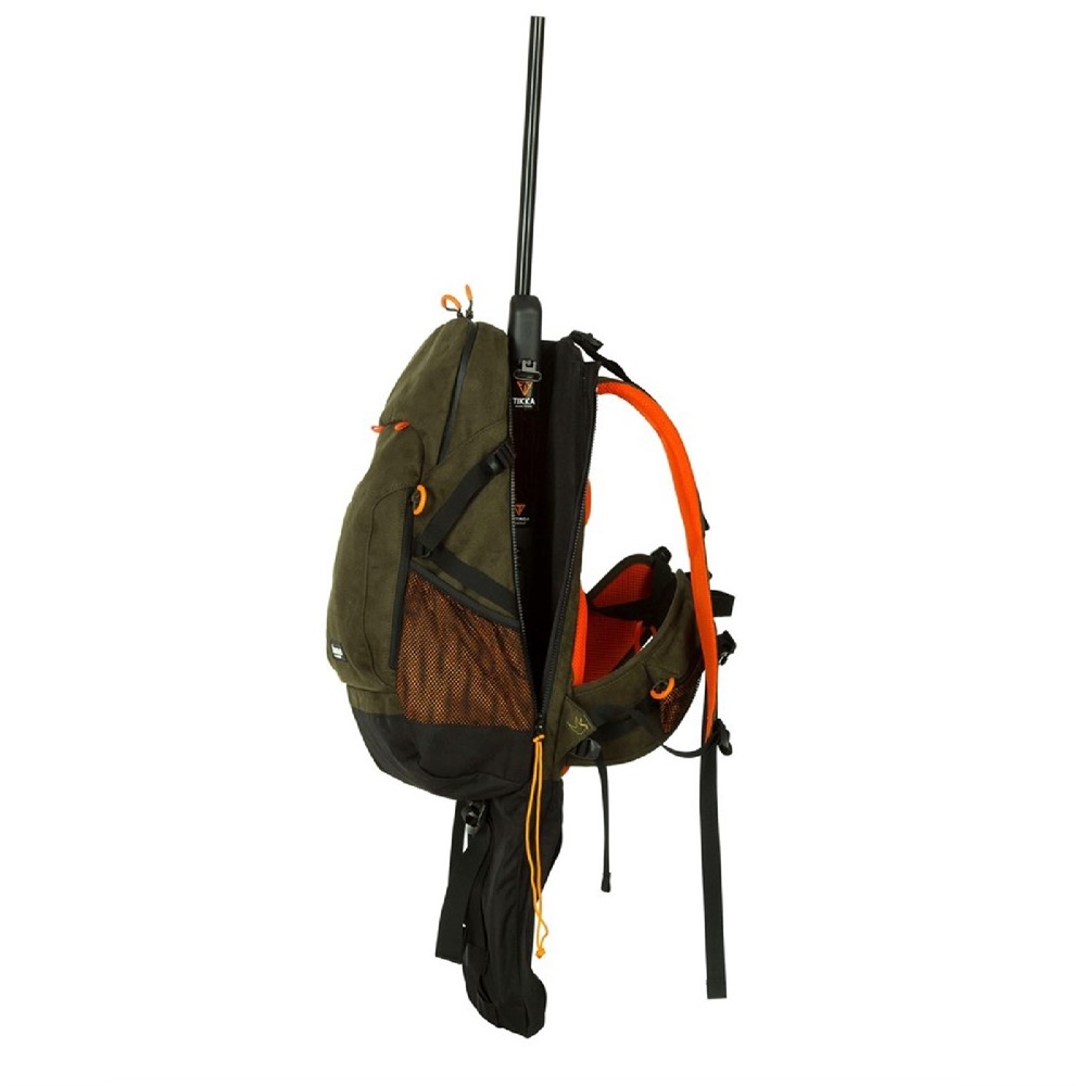 Vapnet sitter stabilt på ryggsäcken och kan tas fram och sättas tillbaka utan att man behöver ta av säcken från ryggen. Bärremmarna är utformade med tanke på skytte. Höftbältet är mycket stabilt och ger en god viktöverföring till höfterna. Dessutom har säcken praktiska fickor för småsaker och möjlighet till infästning av hund.