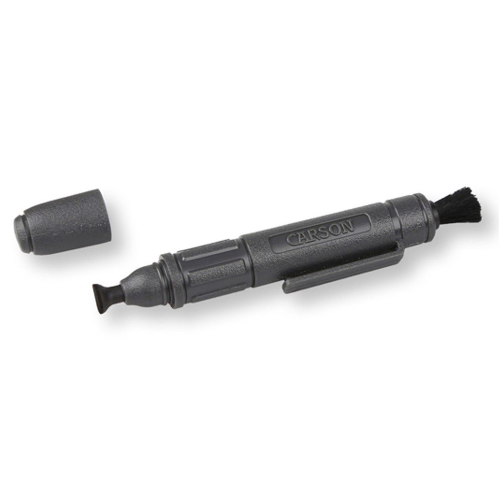 Rengöringspenna som innehåller Carsons Dry Nano-Particle Cleaning Formula som effektivt borstar bort smuts och fingeravtryck från spegelfria kameraliner! På ena sidan är pennan försedd med en borste som lätt borstar bort smuts, damm och partiklar. Dess andra sida har en sugkopp för polering och djupare rengöring.