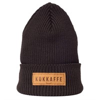 Ribbstickad mössa i ullmix passande för kaffeälskaren. Uppvikt kant som ger extra värme och stretchigt material som ger skön passform. Logga i läder med texten "kokkaffe". Tillverkad i Sverige.