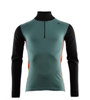 WarmWool Mockneck är en långärmad tröja med en låg krage som hjälper till att hålla värmen runt hals och nacke. Den är tajt i passformen och fungerar därför perfekt närmast kroppen kalla dagar. Dragkedja i halsen för bästa temperaturreglering. Ribbstickat i sidan för komfort och rörlighet. WarmWool är ett stickat material och därmed elastiskt och följsamt. Materialet består av 100 procent merinoull. Kvalitén är 200 gram per kvadratmeter. Fibrerna i WarmWool är 20,5 micron, materialet är mjukt och behagligt mot huden. WarmWool är lämpligt som lager ett närmast kroppen eller som lager två, när det är riktigt kallt.