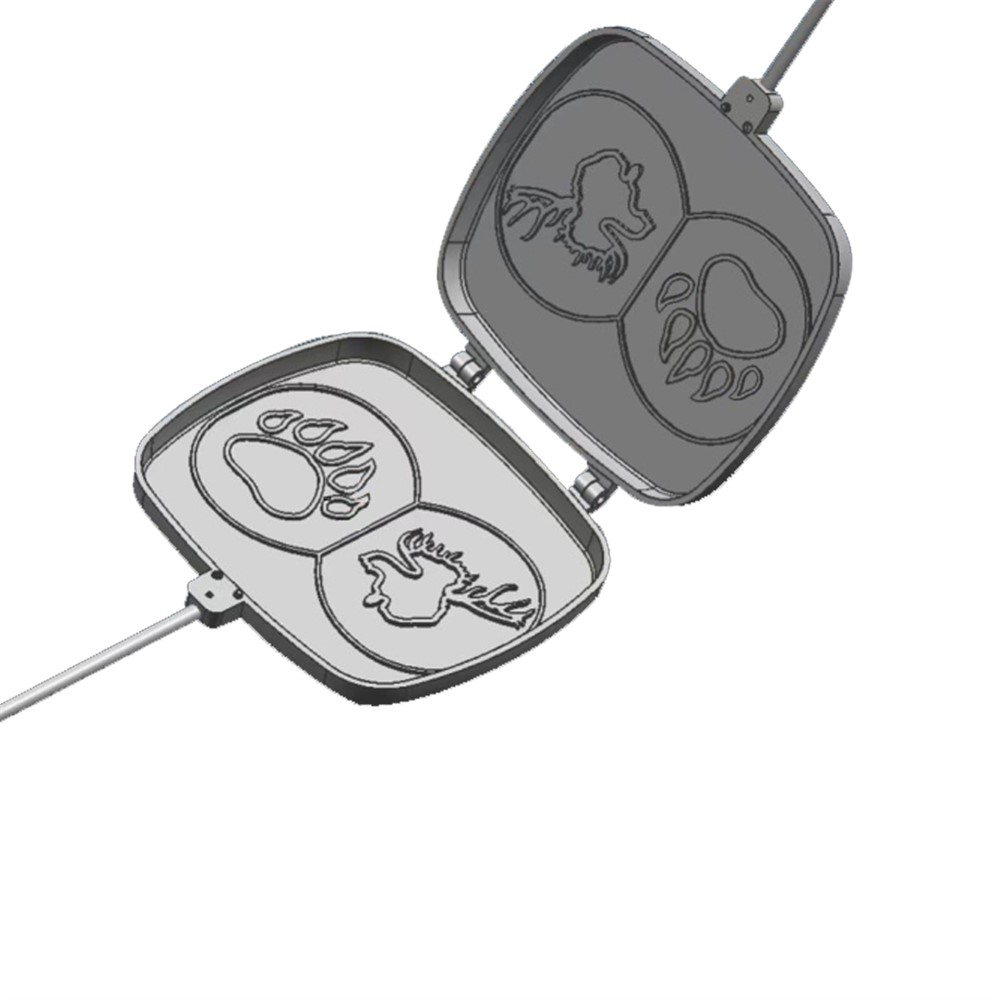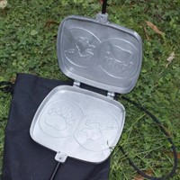 Smörgåsjärn i aluminium med älghuvud och björntass, förvaringspåse i Oxford canvas.