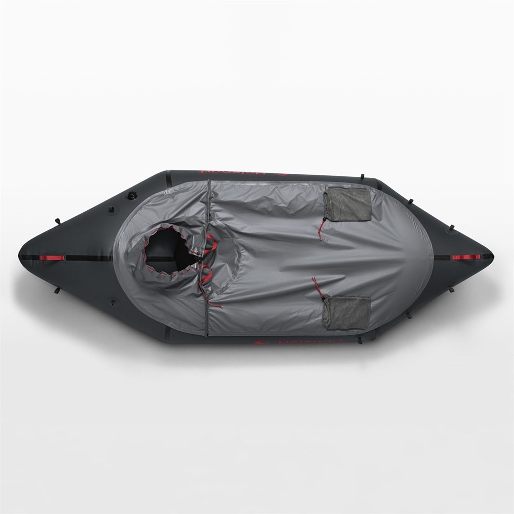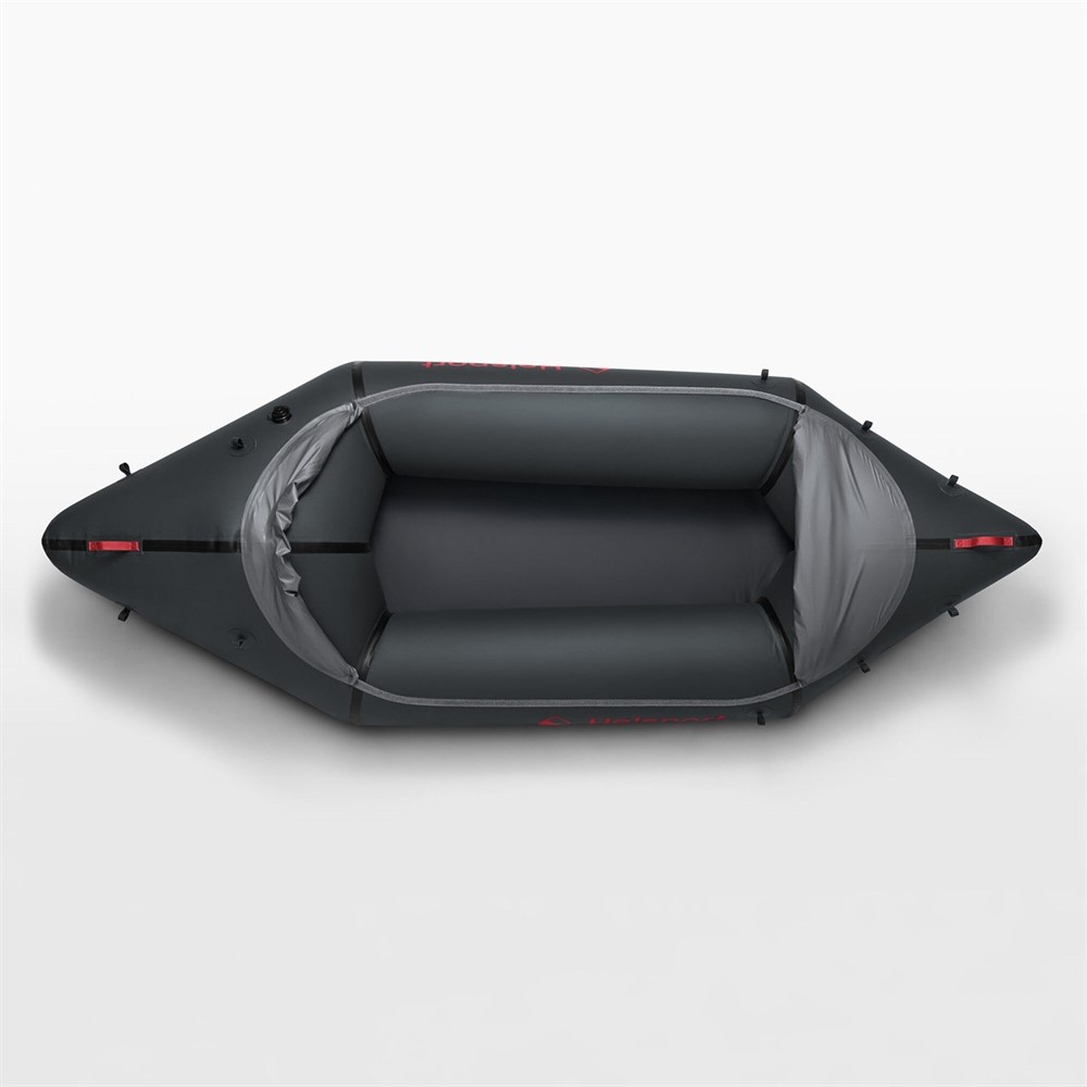 Stream PRO Packraft är stabil och lätt och det ultimata verktyget för transporter i terrängen, perfekt för flerdagarsäventyr, både på mark och över vatten. Hög flytkapacitet med större volym i rören gör denna packraft smidig också när den bär tyngre last. Den har TPU-beläggning på både insidan och utsidan av tyget för extra punkteringsmotstånd. Vi har också optimerat antalet sömmar för att spara vikt och minimera antalet svaga punkter. Sitsen är högre än normalt för att minimera belastningen på axlarna när du paddlar. Inget separat ryggstöd behövs eftersom vi har utformat denna packraft för vila och stöd till din rygg på ett bättre sätt än vad ett separat ryggstöd klarar. Uppblåsningspåse och bärväska medföljer.