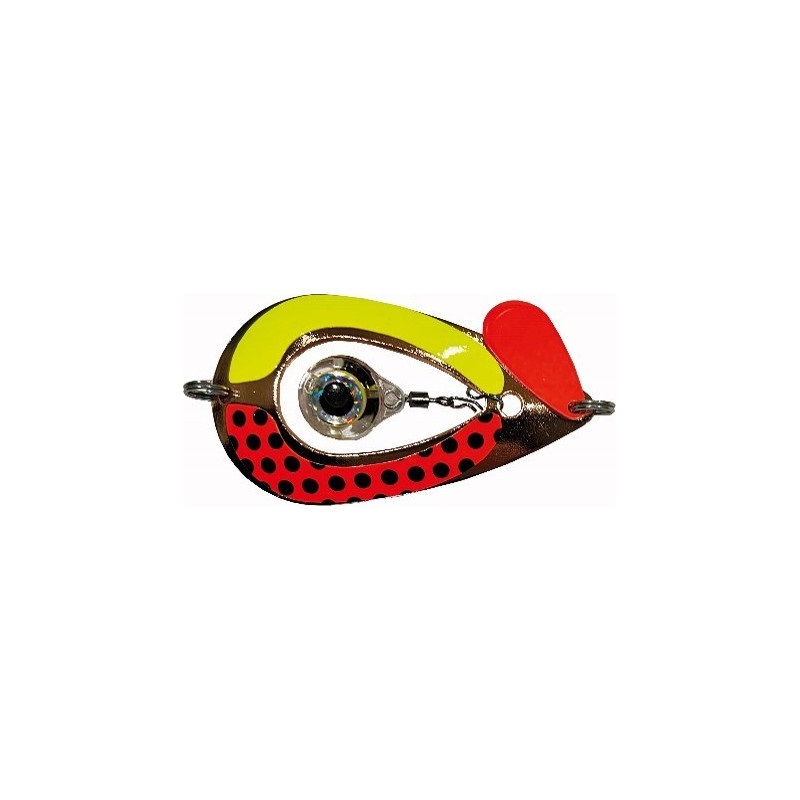 X Raiden - är ett grymt blinkblänke från Stoxdal i mycket hög kvalité. Blänket är 68 mm långt och väger 17 gram. Själva blinken är en microblink med röd blink som aktiveras när betet kommer i kontakt med vatten. Blinken är frihängade och kommer att blinka åt olika håll varje gång du lyfter betet. Blinken har en blinktid på ca 100 h och går att byta ut. Högst upp på betet finns även en mindre sked "clapper" i fluorescerande färg som skapar ljud och vibrationer varje gång du lyfter betet, allt för extra attraktion.