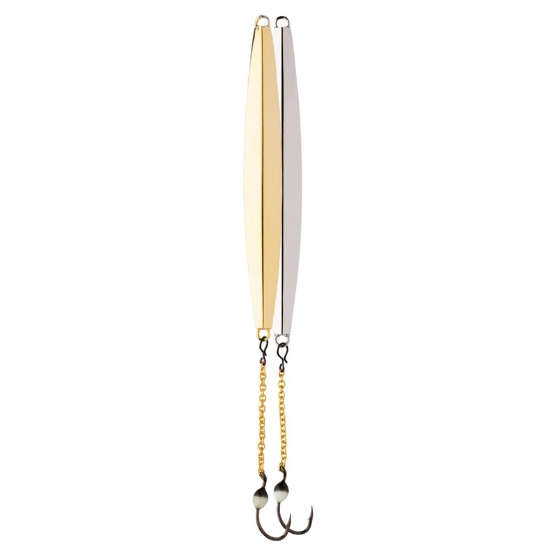 VMC Slim-Finn Pimpel är en vertikalpirk med kedjelänkar och krokar. Långsmala och snabbsjunkande vertikalpirkar för en rad olika arter!