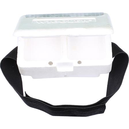 Maggotask i pressad frigolit med två fack. Utrustad med resårband med kardborre som kan fästas runt benet. Praktiskt för att alltid ha betet nära till hands! Locket har magnetlås.